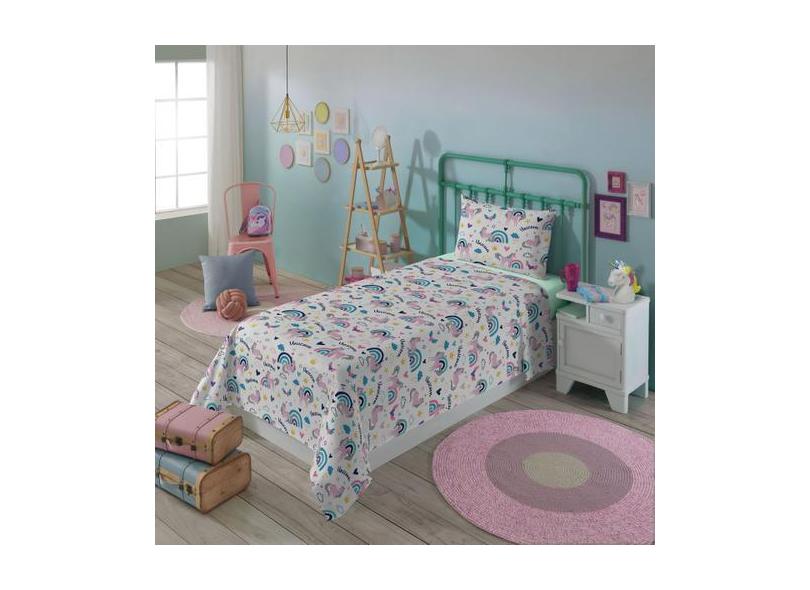 Jogo De Cama Infantil 100% Algodão Unicórnio 3 Peças Lepper