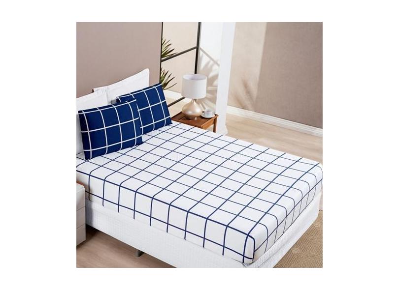Jogo De Cama King Dupla Face Grid Micro Percal 200 Fios Austin 3 Pçs M