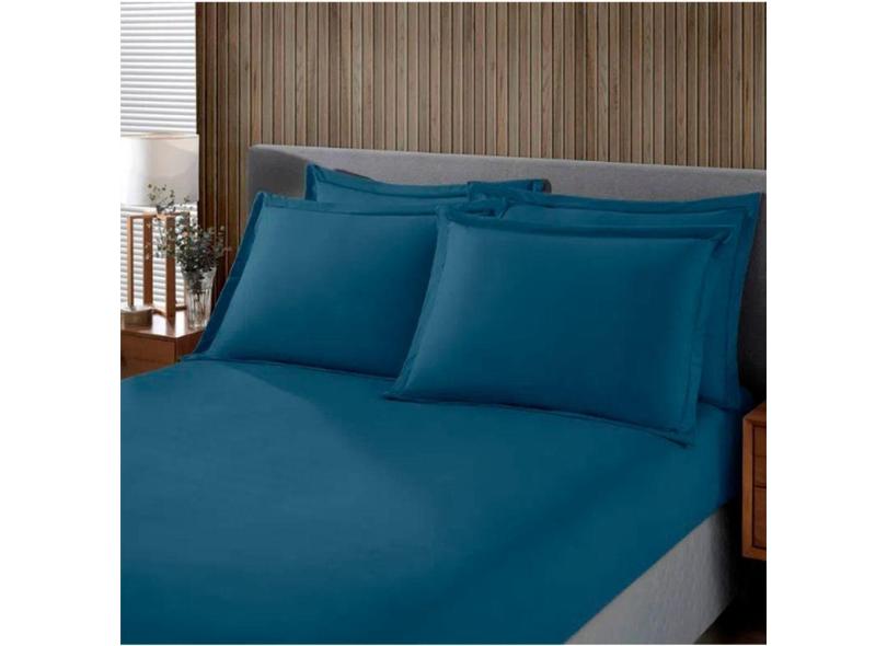 Jogo De Cama King Malha Liso 3 Peças Image Azul Marinho