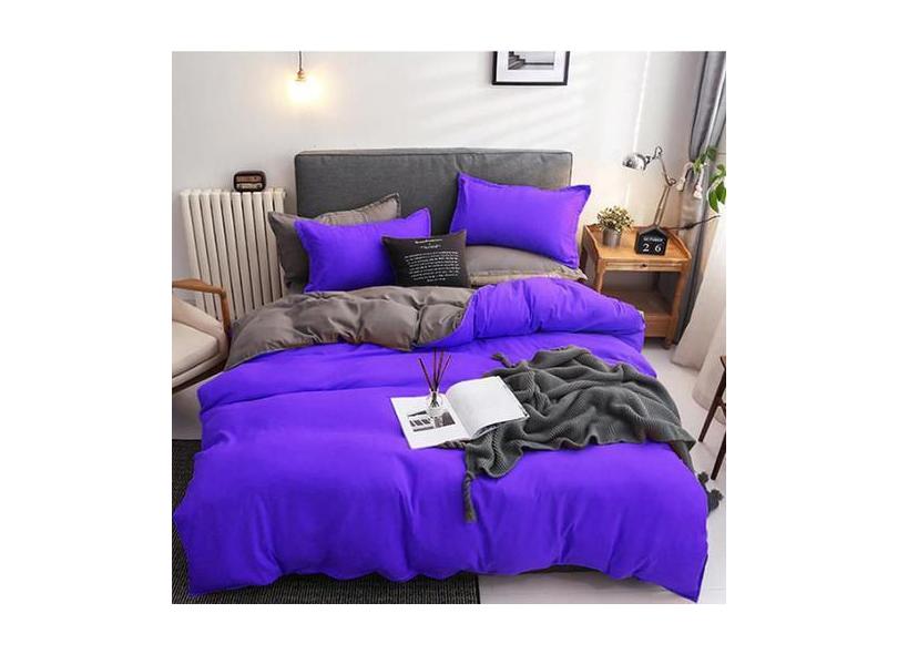 Jogo De Cama King Size Casal 7 Peças Edredom Roxo Com Cinza - Casa Da