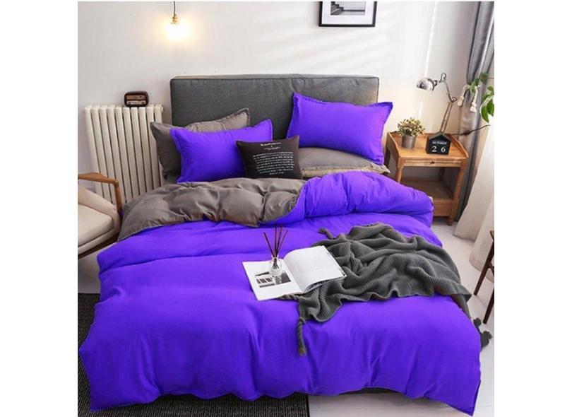 Jogo De Cama King Size Casal 7 Peças Edredom Roxo Com Cinza