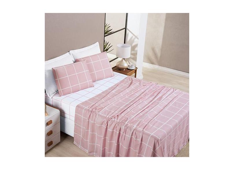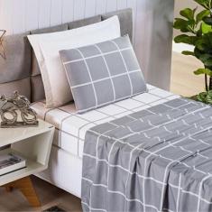 Jogo De Cama Lençol 04 Peças Micro Percal 200 Fios Estampado Grid Aust