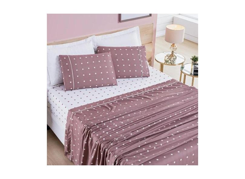 Jogo De Cama Lençol 04 Peças Micro Percal 200 Fios Estampado Petit Poá