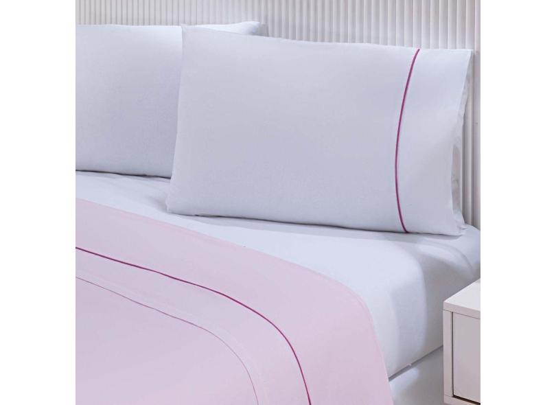 Jogo De Cama Lençol 100% Algodão Percal 150 Fios Casal Gran Moratta 4 Peças Branco E Rosa