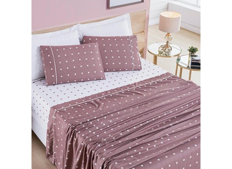 Jogo De Cama Lençol 200 Fios Petit Poá Casal Padrão 04 Peças - Rose