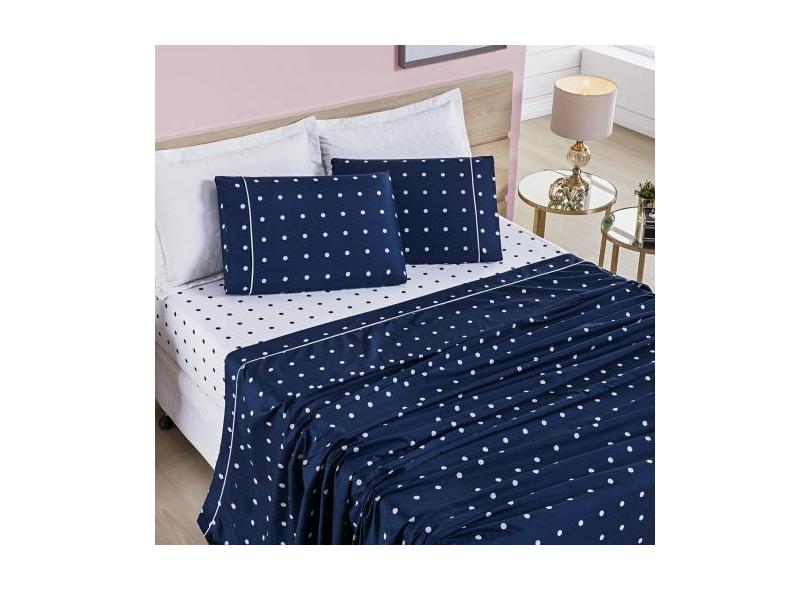 Jogo De Cama Lençol 200 Fios Petit Poá Queen 04 Peças - Marinho - Bia