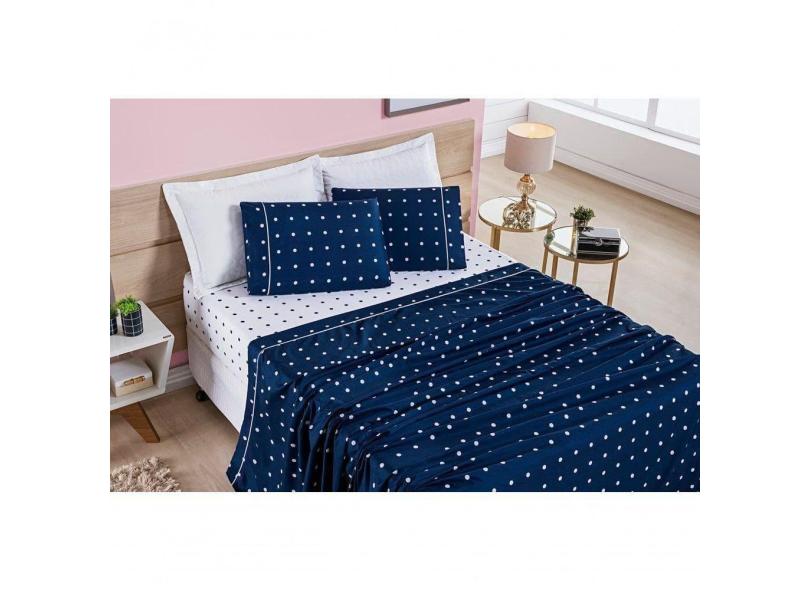 Jogo De Cama Lençol 200 Fios Petit Poá Queen 04 Peças Marinho