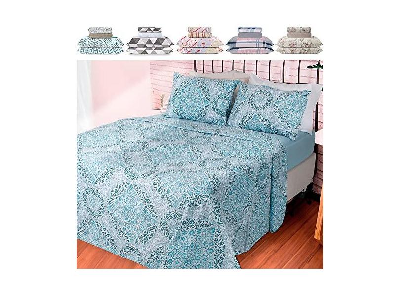 Jogo de Cama Lençol 4 Peças Casal Com Elástico Estampado 138x188x30cm - BF Colchões
