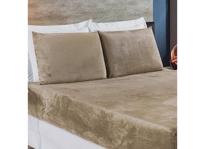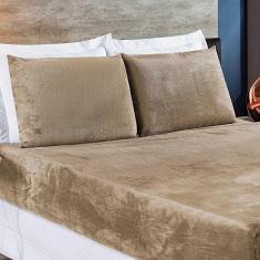 Jogo de Cama Lençol BiaSoft Solteiro Manta Flannel Toque Extra Macio 02 Peças - Cáqui