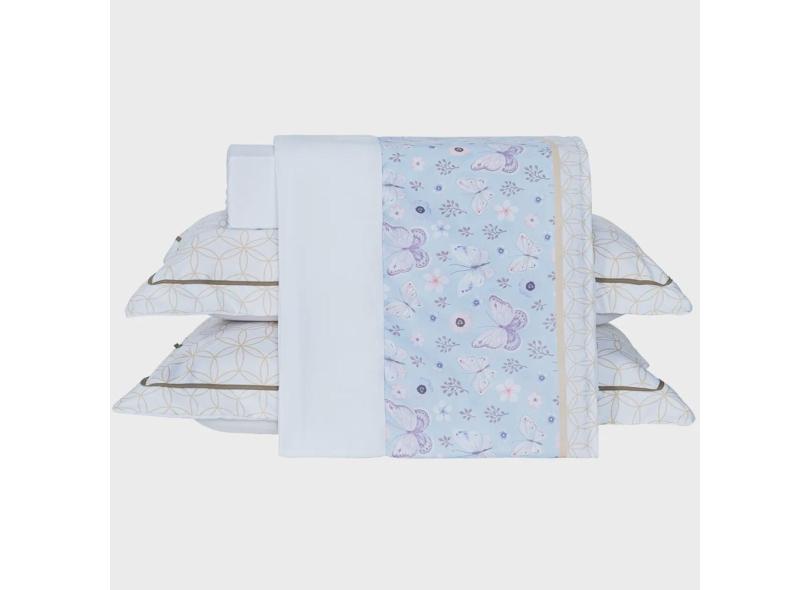 Jogo de Cama Lençol Borboletas Caqui/Branco queen 04 Peças - Percal 200 Fios