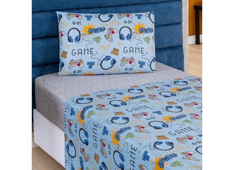 Jogo De Cama Lençol Bouti Infantil Kids Solteiro 03 Peças - Game