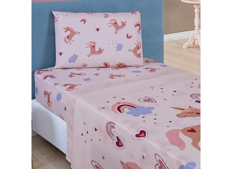 Jogo De Cama Lençol Bouti Infantil Kids Solteiro 03 Peças - Unicórnio