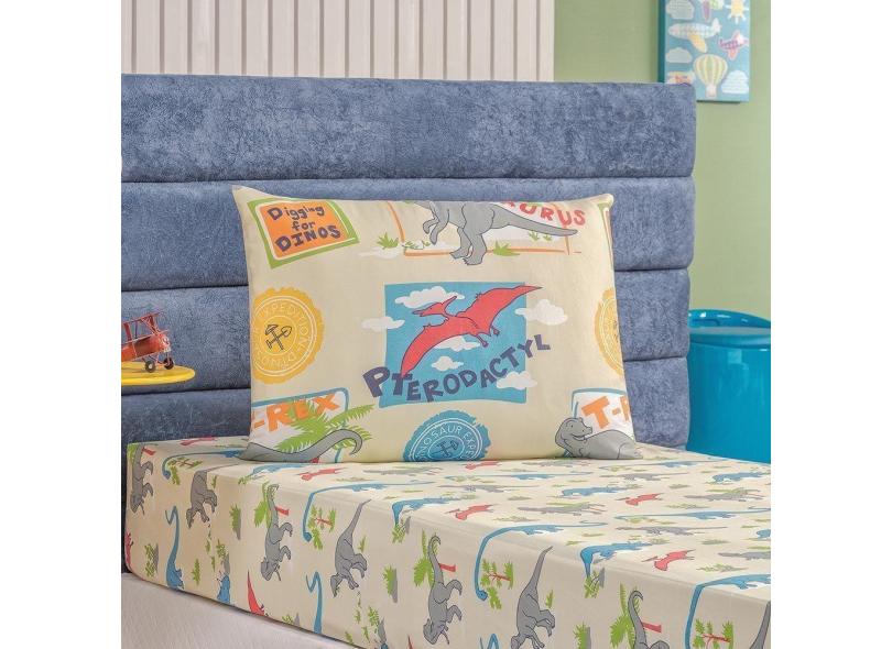 Jogo De Cama Lençol Carrosel Solteiro 02 Peças Infantil Estampado Divertido - Dinossauro