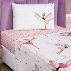 Jogo De Cama Lençol Carrosel Solteiro 03 Peças Infantil Estampado Divertido - Bailarina Ballet
