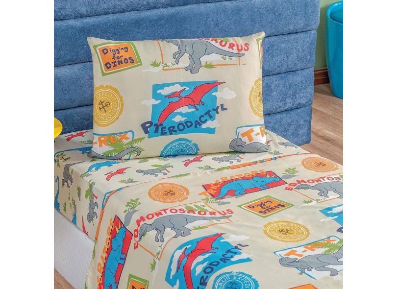 Jogo De Cama Lençol Carrosel Solteiro 03 Peças Infantil Estampado Divertido - Dinossauro