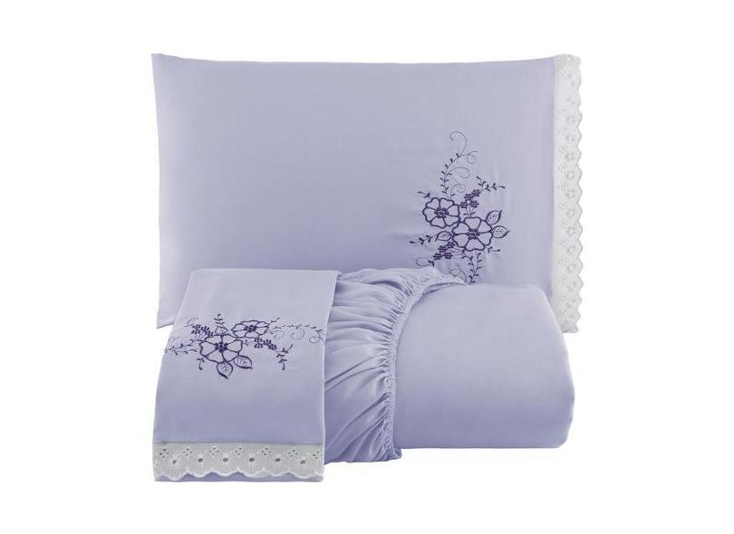 Jogo De Cama Lençol Casal Bordado Advance 3 Peças - Lilás - Casa Show