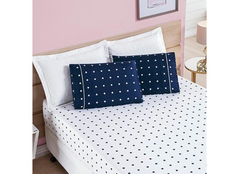 Jogo De Cama Lençol Celine Casal King 03 Peças Micropercal 200 Fios Bolinhas - Azul Marinho