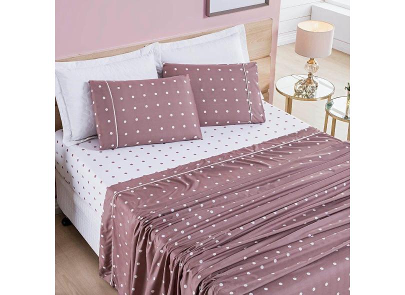 Jogo De Cama Lençol Celine Casal Padrão 04 Peças Micropercal 200 Fios Bolinhas - Rosê