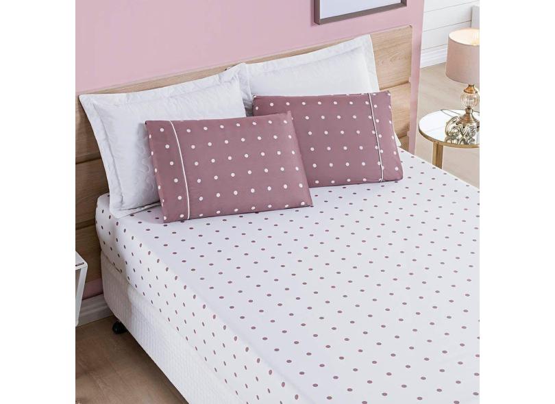 Jogo De Cama Lençol Celine Casal Queen 03 Peças Micropercal 200 Fios Bolinhas - Rosê