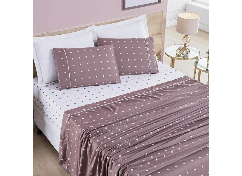 Jogo de Cama Lençol Celine Casal Queen 04 Peças Micropercal 200 Fios Bolinhas - Rosê