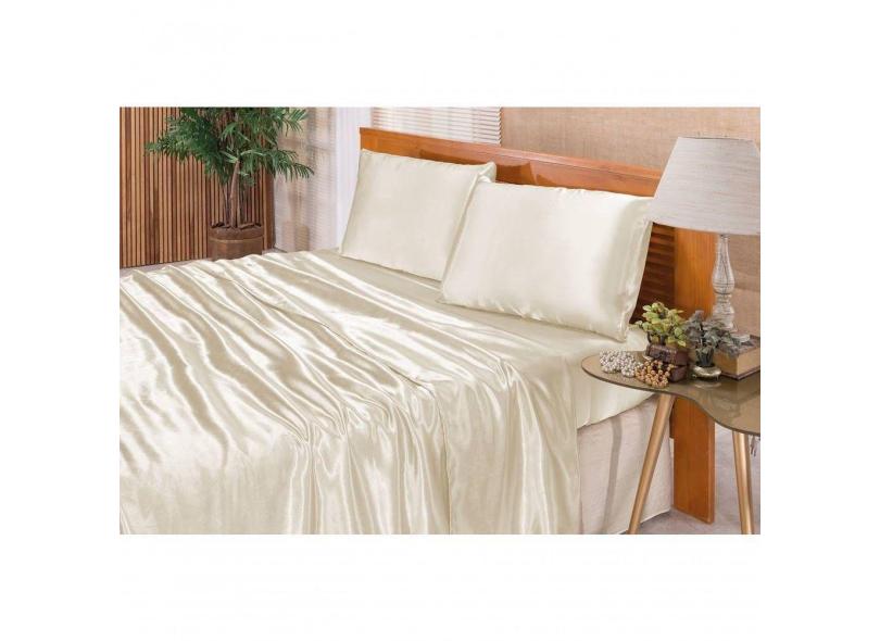 Jogo De Cama Lençol Cetim Casal Romantic 04 Peças Palha