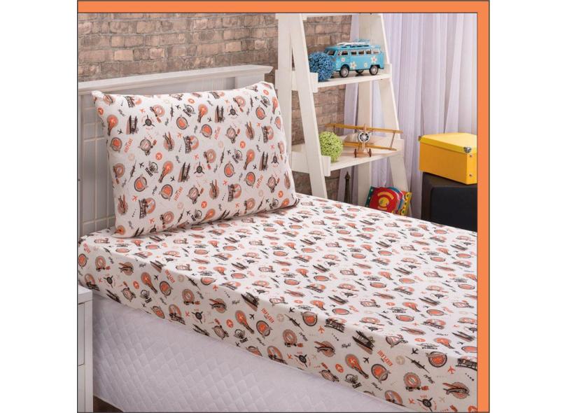 Jogo de Cama Lençol em Malha Solteiro Avião 2 Peças - Bege