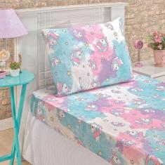 O menor preço encontrado no Brasil para Jogo de Cama Lençol Fantasy Solteiro 02 Peças 100% Algodão Infantil Desenho - Unicórnio Rosa atualmente é R$ 142,17.
