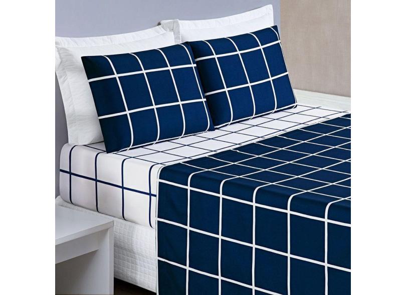 Jogo De Cama Lençol Minimalista Casal Padrão 04 Peças Micropercal 200 Fios Premium Azul Marinho