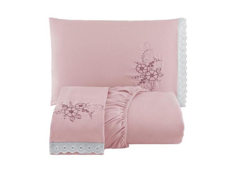 Jogo De Cama Lençol Queen Bordado Advance 3 Peças - Rosê - Casa Show E