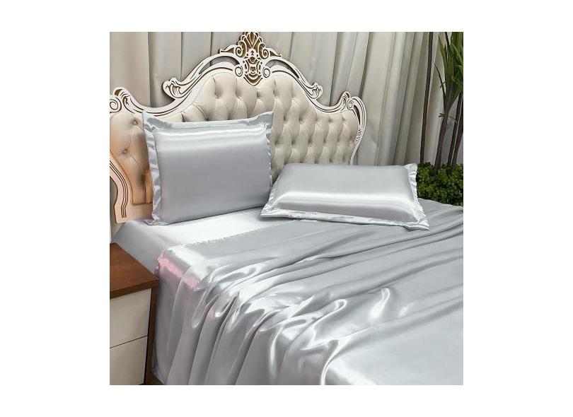 Jogo De Cama Lençol Queen Luxo Charmousse 4 Peças - Prata - Casa Show
