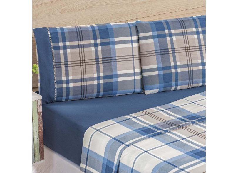 Jogo De Cama Lençol Real Casal King Micro Percal 200 Fios 04 Peças Azul Titânio