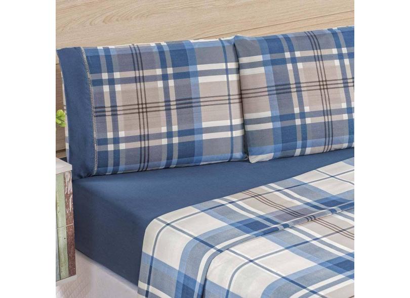 Jogo De Cama Lençol Real Casal Queen Micro Percal 200 Fios 04 Peças Titânio Azul