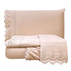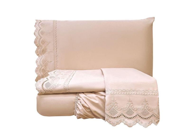 O menor preço encontrado no Brasil para Jogo De Cama Lençol Realce Queen 4 Peças Percal 300 Fios Bordado Inglês Macio - Rosê atualmente é R$ 228,80.