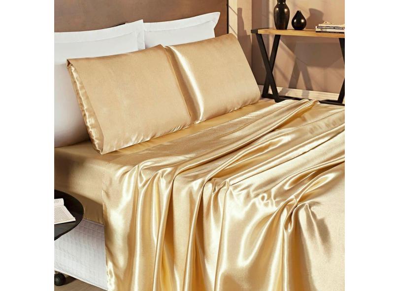 Jogo De Cama Lençol Romance Casal King Tecido Cetim Charmousse Toque Suave - Dourado