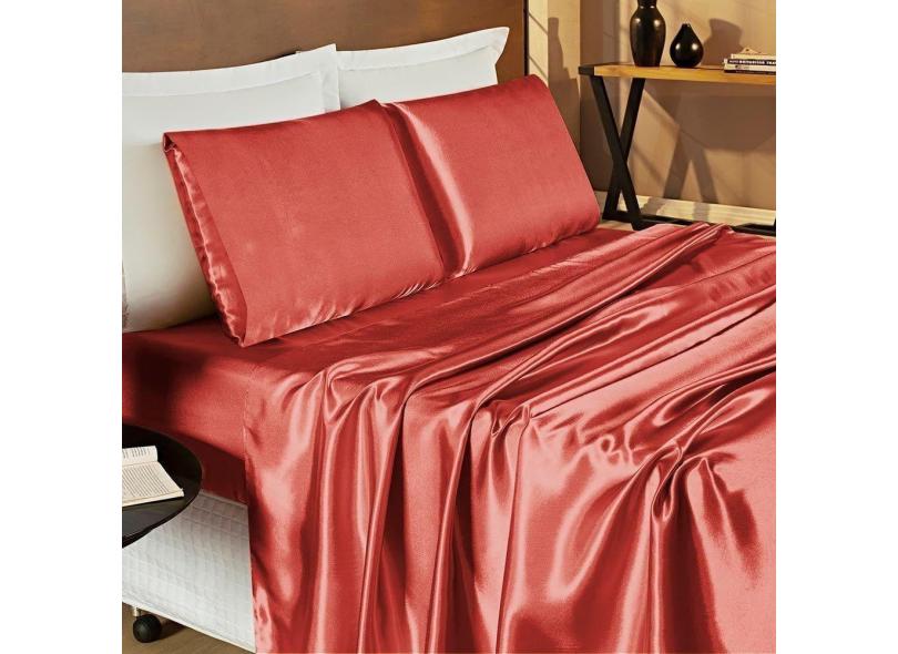 Jogo De Cama Lençol Romance Casal King Tecido Cetim Charmousse Toque Suave - Telha