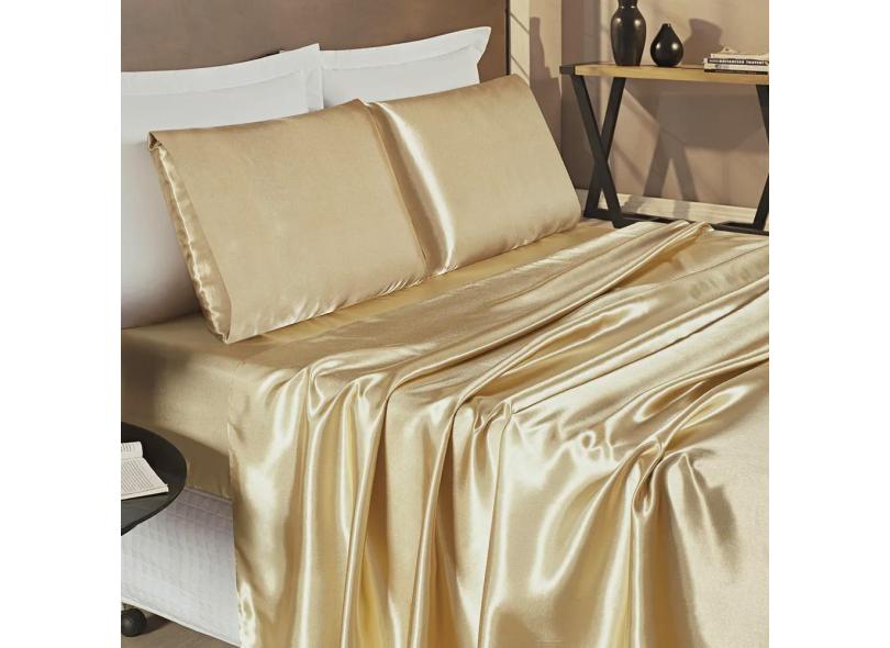 O menor preço encontrado no Brasil para Jogo de Cama Lençol Romance Casal Queen 04 Peças Tecido Cetim Charmousse Brilhante - Dourado atualmente é R$ 169,62.