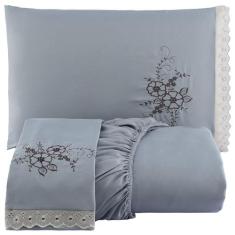 Jogo De Cama Lençol Solteiro Bordado Advance 2 Pçs - Cinza - Casa Show