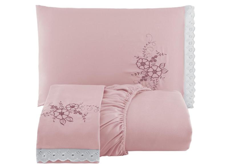 Jogo De Cama Lençol Solteiro Bordado Advance 2 Peças - Rosê