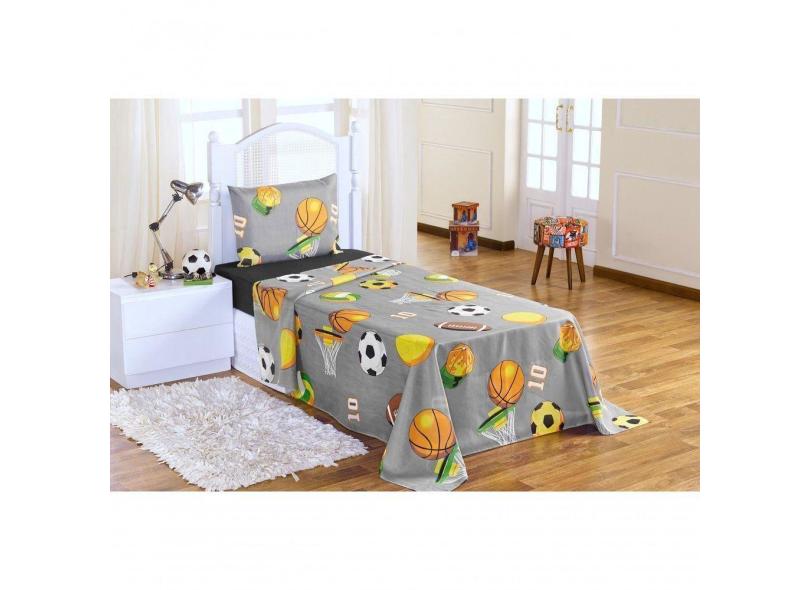 Jogo De Cama Lençol Solteiro Infantil 3 Pecas Futebol Cinza
