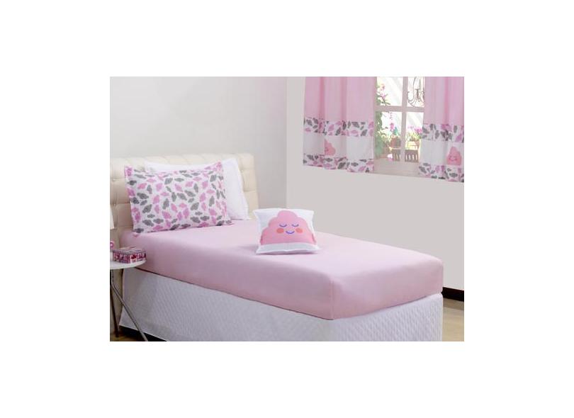 Jogo De Cama Lençol Solteiro Nuvem Rosa 03 Peças - Deccoralle