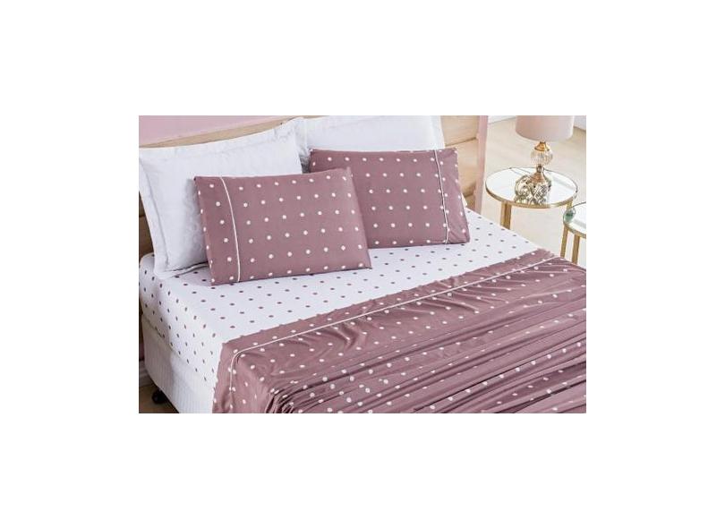 Jogo De Cama Lençol Solteiro Poá 3 Pçs Micro 200 Fios Rosê - Nathalia