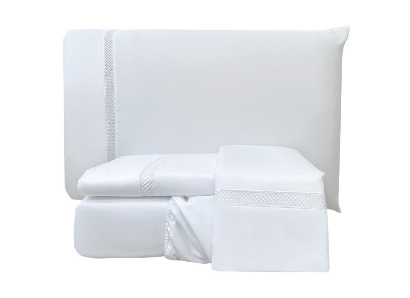 Jogo de Cama Lençol Stella Queen 4 Peças Percal 300 Fios Ponto Infinito Macio - Branco
