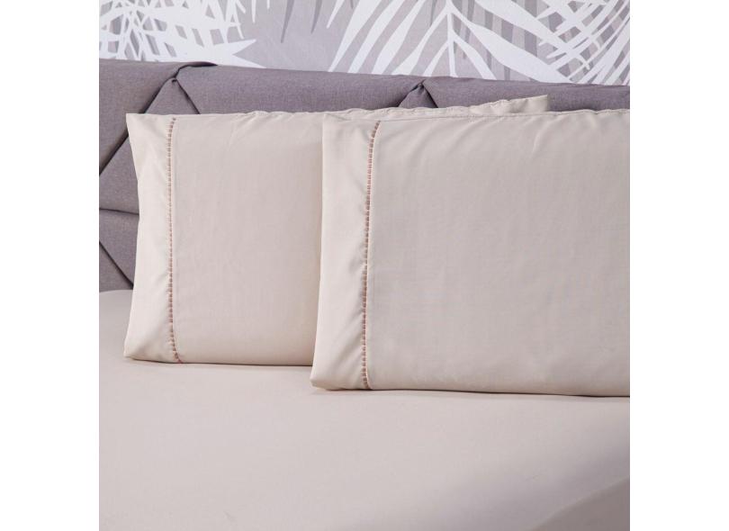 Jogo De Cama Liso Bege Casal 03 Pçs Micropercal 180 Fios