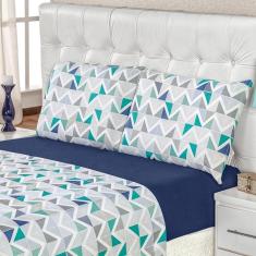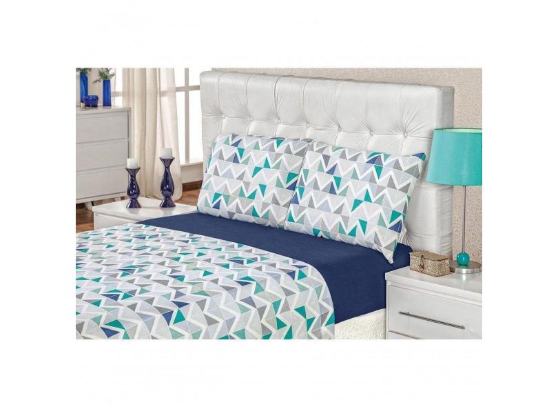 Jogo De Cama Malha King Quality 04 Peças Geométrico Azul