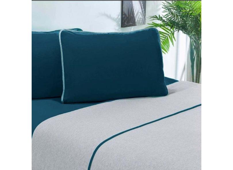 Jogo De Cama Malha Lençol 100% Algodão Urbano 4 Peças King Azul Petroleo-mescla
