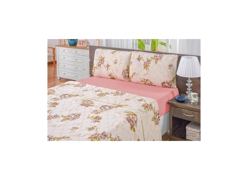 Jogo De Cama Malha Solteiro Quality 03 Peças - Estampa Rosê - Bia Enx
