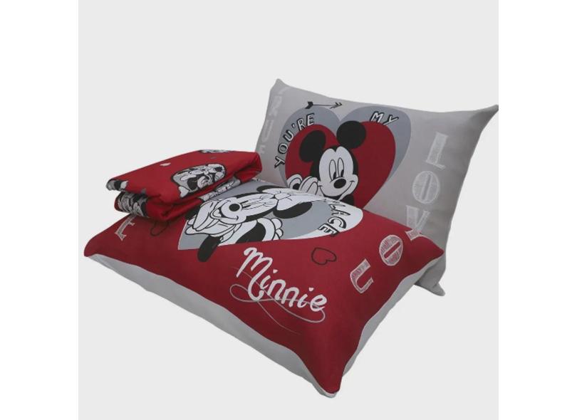 Jogo de Cama Portallar Casal Malha Mista Estampado Disney Joy Mickey Minnie Lovers 3 Peças Vermelho