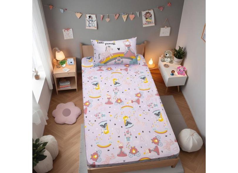 Jogo de Cama Portallar Solteiro Malha Mista Joy Princesas Magicas 2 peças Rosa