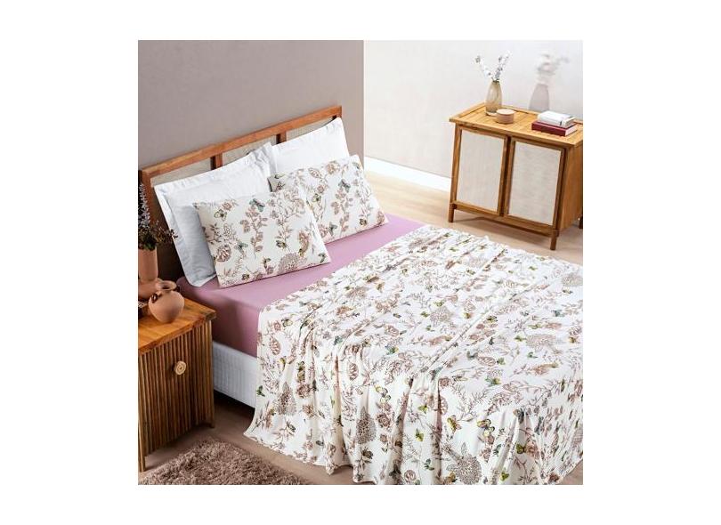 Jogo De Cama Quality Queen 4 Peças - 100% Algodão - Malha Penteada - M