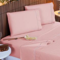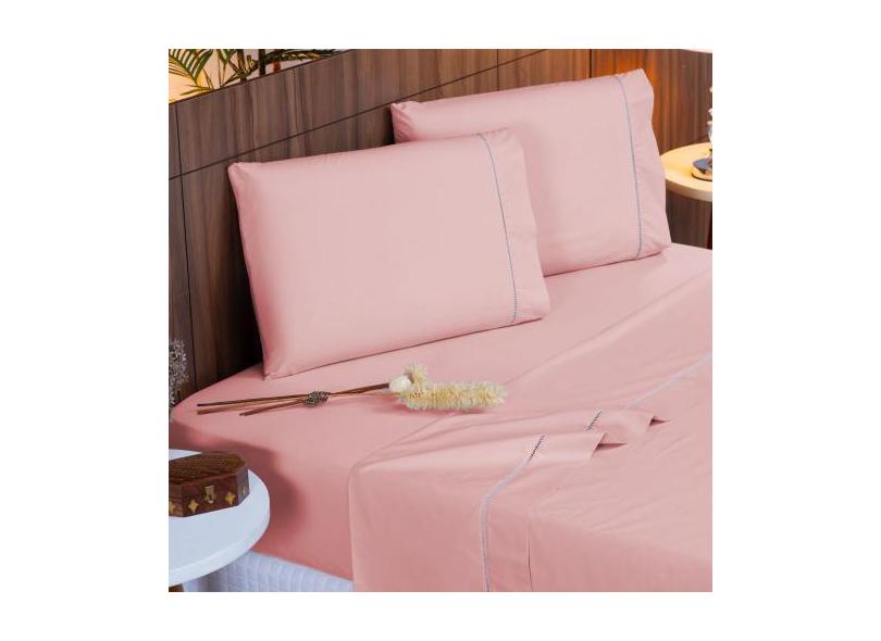 Jogo De Cama Queen 140 Fios Ponto Palito Rosé Valle Enxovais 4 Peças